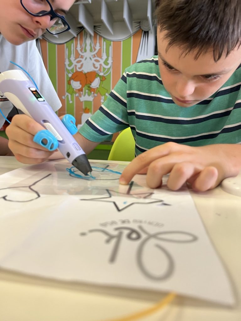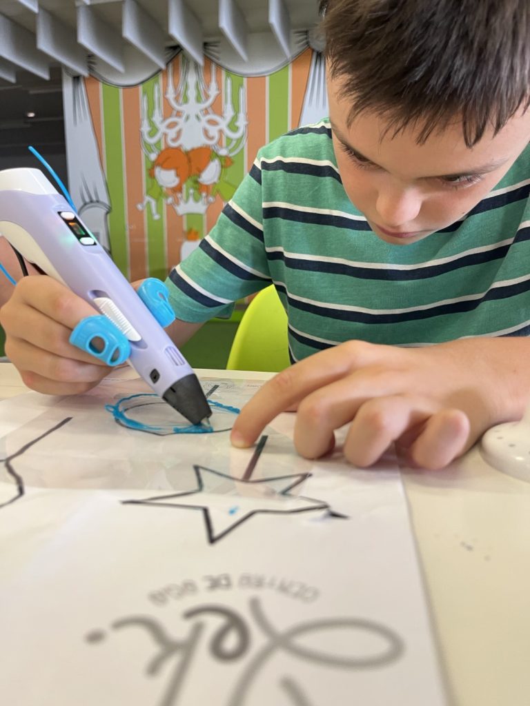 Aunque la idea era hacer manualidades en 3D, no nos dio tiempo. Aun así, nos divertimos haciendo nuestras creaciones en 2D, ¡un gran ejercicio de pensamiento científico!
