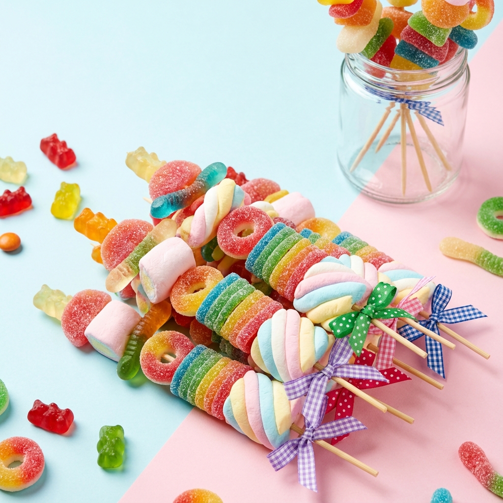 2. 🍡 Brochetas Dulces (Súper Vistosas)