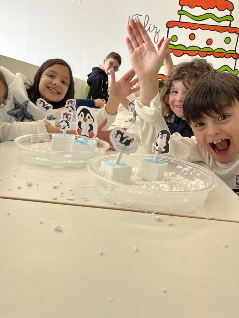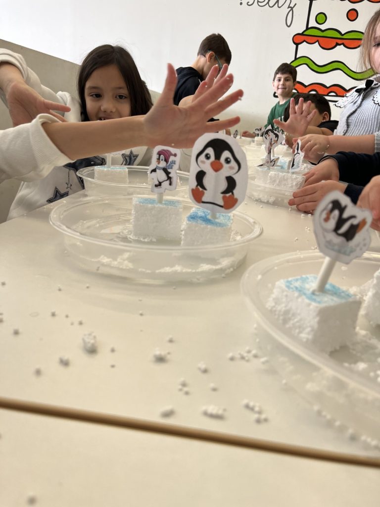 Diversión sensorial. Tocar el frío hielo, deslizar a los pingüinos y ver como se derretida fue el “empujoncito” final para volver al cole con las pilas cargadas y muchas ganas de contar todo lo vivido.