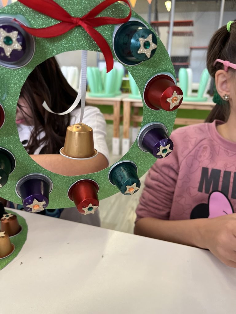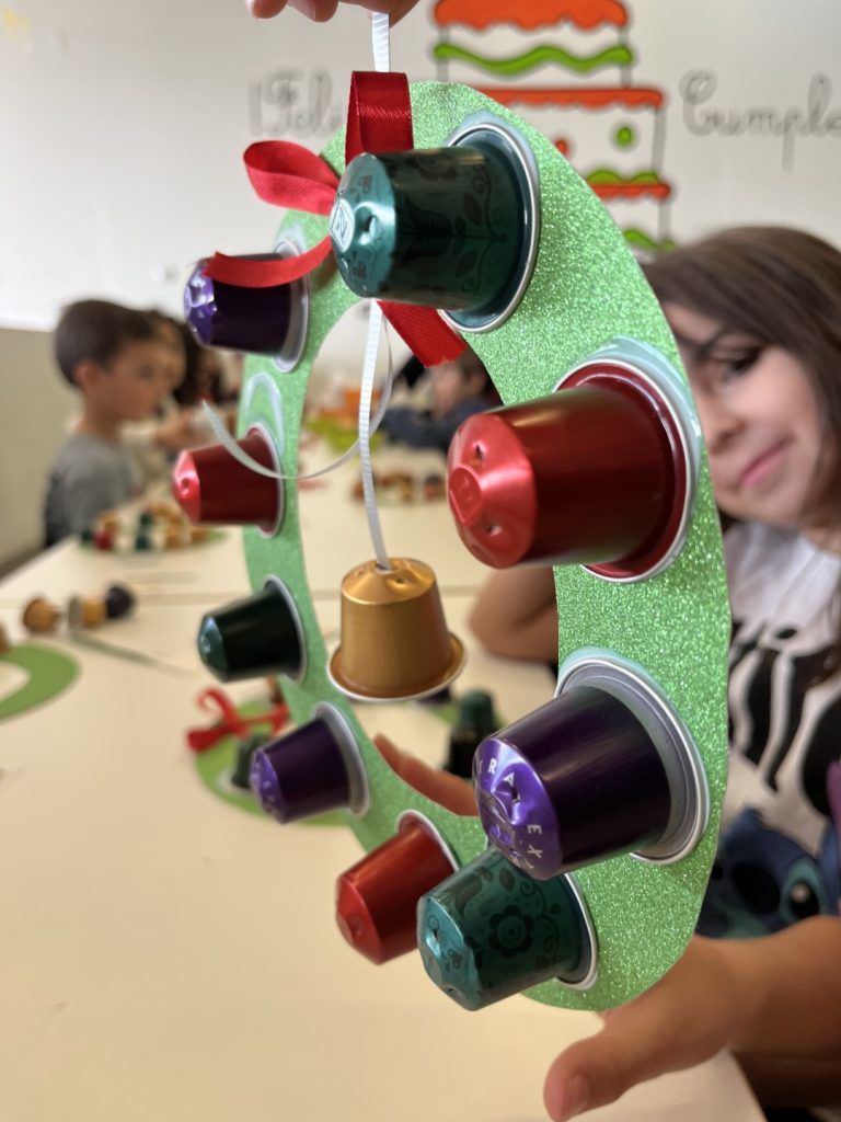 Este día también nos dio tiempo hacer la corona de navidad para decorar la puerta de casa, la de su habitación o ese lugar tan especial para ellos.