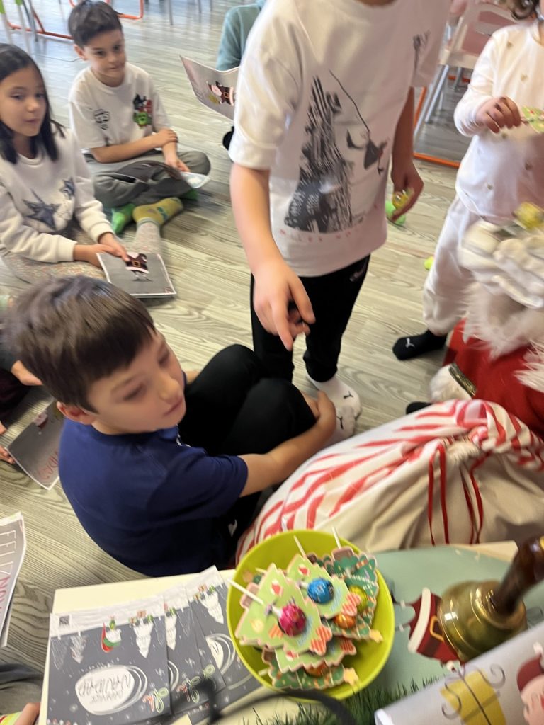 Fue un momento lleno de nervios y alegría donde pudimos vivir una experiencia inolvidable; entregar en mano nuestra carta, nos hicimos una foto con él y un detallito muy rico que nos encantó a todos. Gracias por la visita Santa.