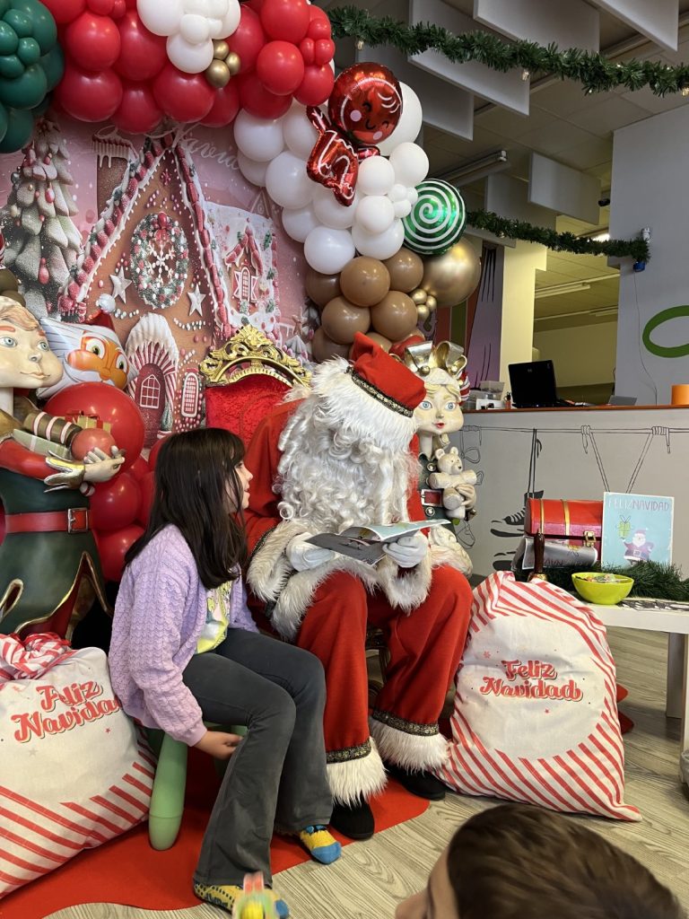 Rápidamente, Santa se acomodó en su trono y nos dejó a todos boquiabiertos contándonos todo el trabajo que tiene estos días en su fábrica del Polo Norte para que ningún niño o niña se quede sin su regalo.
