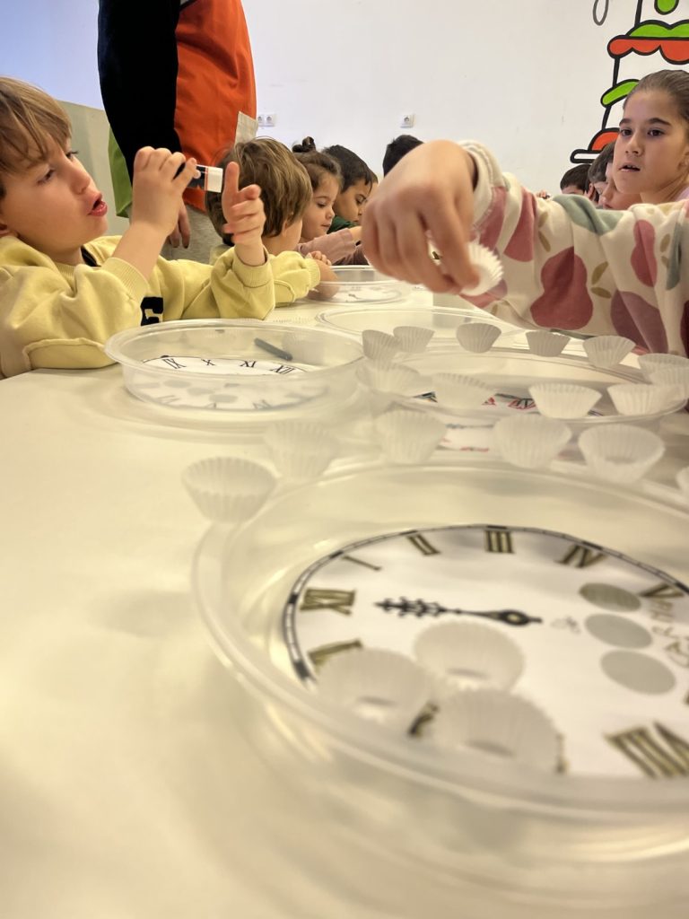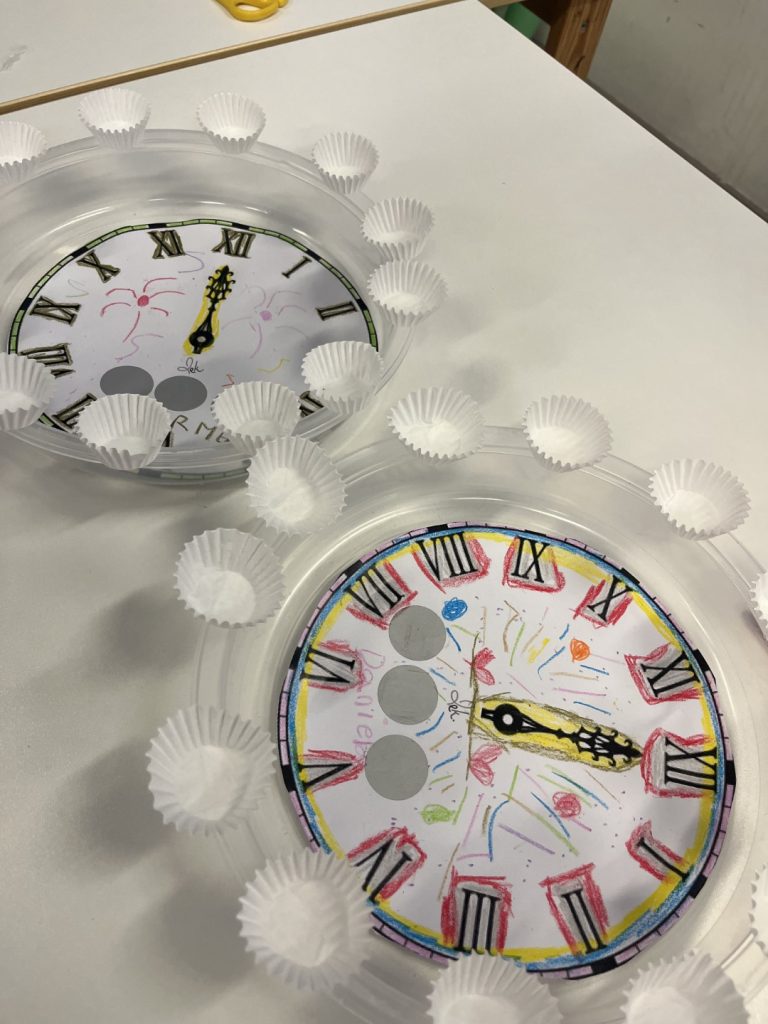 Acabamos el año con una gran celebración. Primero hicimos nuestro reloj que marca el inicio del nuevo año. Para que esta noche cada uno pueda poner sus uvas de la suerte, lacasitos, aceitunas, mandarinas o que se yo….. cuantas opciones me dijeron jajajaj hicimos un reloj que además tenía premio.