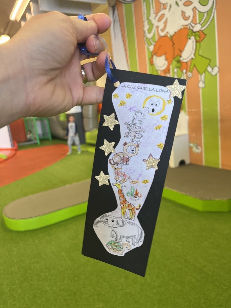 Para que nunca olviden esta lección, al finalizar el cuento crearon sus propios marcapáginas espaciales. Así, cada vez que lean, recordarán que con amigos, ¡hasta la luna es alcanzable!!