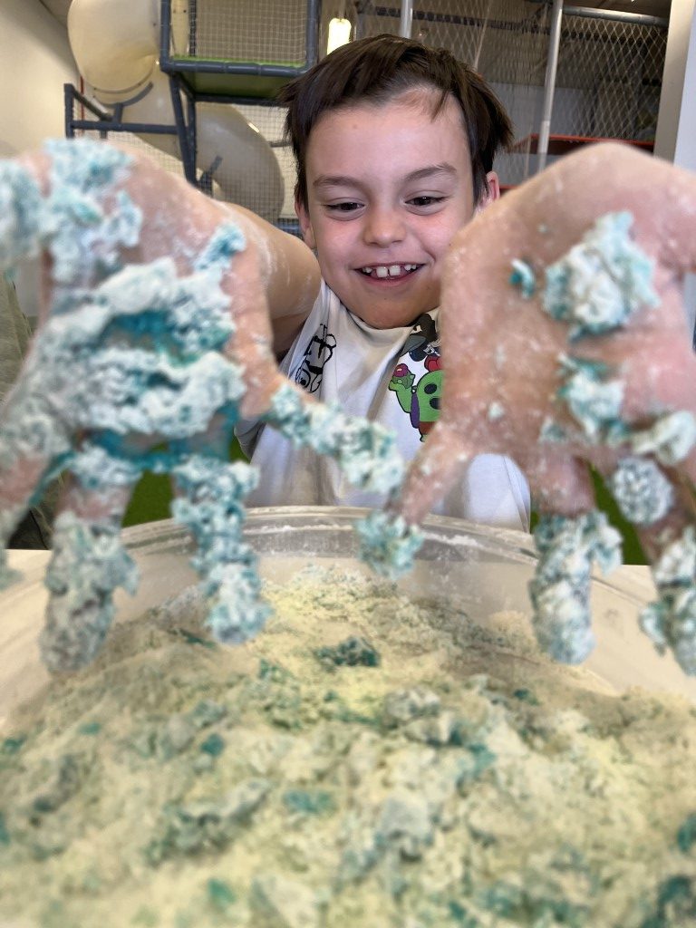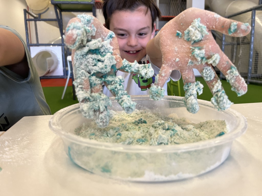 Una vez en la luna, lo más emociónate fue poder tocar la “arena lunar” una experiencia sensorial única con texturas granuladas y suaves que nos hicieron sentir como verdaderos astronautas explorando la superficie de la luna.