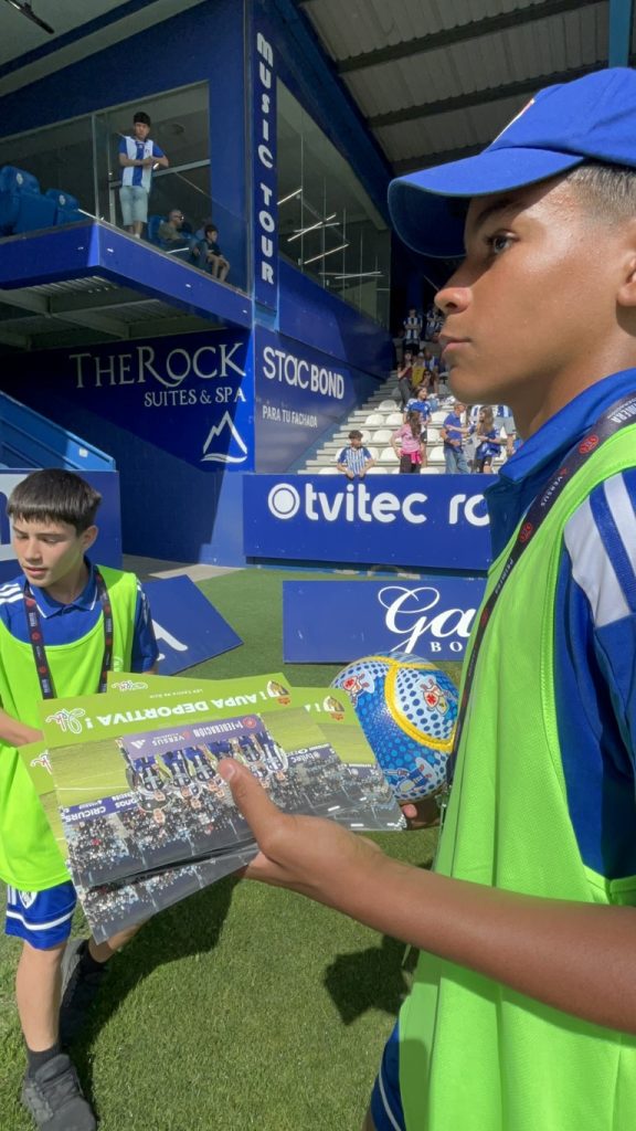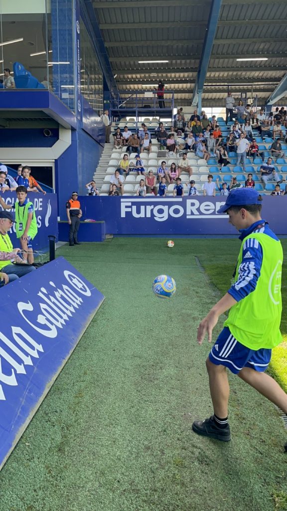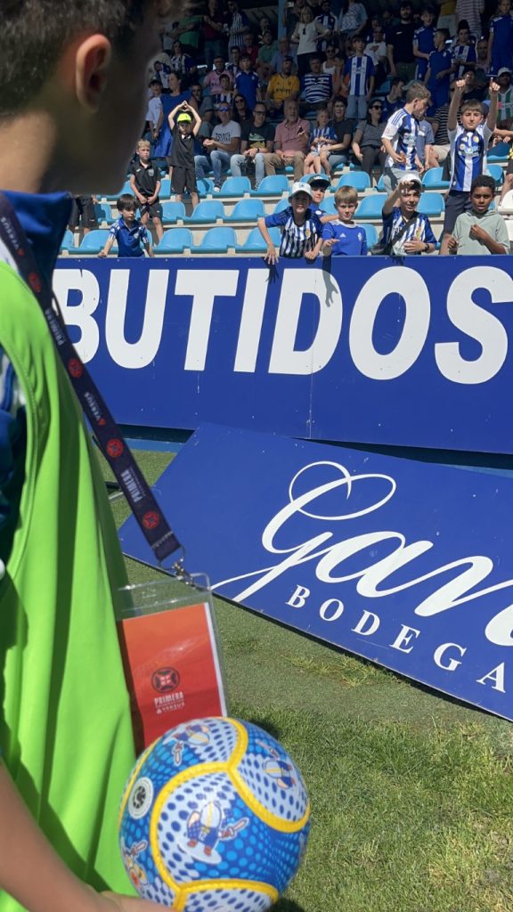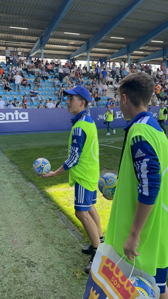 - Balones: El climax de la jornada llegó con el lanzamiento de balones firmados por los jugadores. Cada balón que volaba hacia las gradas no era solo un regalo firmado, sino un sueño por conseguir y desear atrapar con sus manos un pedazo de magia de la Ponfe.